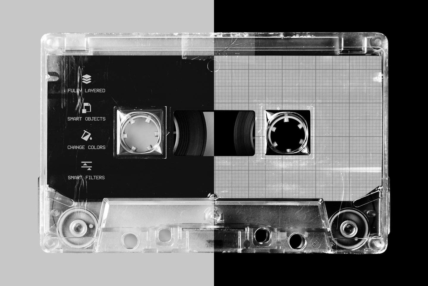 Crafted using real photos of vintage audio cassettes complete with visible scratches for that genuine touch of wear and tear, it’s super easy to use. Just pop your design into the smart object layer in Photoshop, and you're good to go!