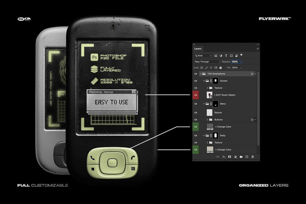 - Smart Object Editing: Just double-click to edit. Insert your design into the Smart Object layer, and it seamlessly integrates with the retro device screen.