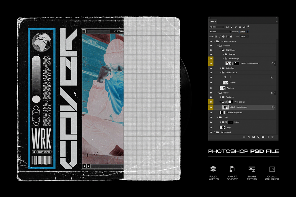 - Smart Object Magic: Swap out cover art with ease. It's like changing records on a turntable – simple and fun.